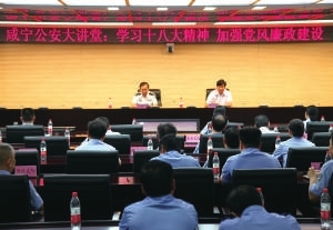 29日,市纪委有关负责人应邀来到市公安局,为全体民警作了题为《学习十八大精神加强党风廉政建设》的专题讲课,这标志着咸宁公安大讲堂正式启动。丁永涛/摄