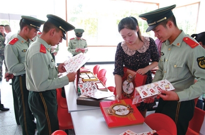 | 武警咸宁支队官兵挑选月饼对家人祝福 |