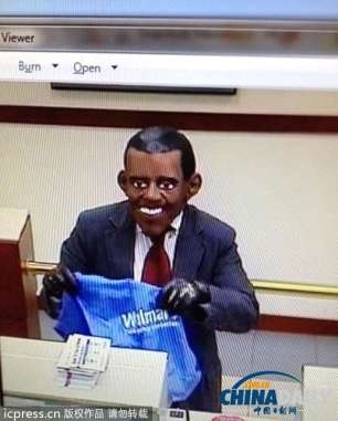 据报道,梅里马克当地警方称,该男子头戴奥巴马面具,身穿西服上衣和牛仔裤,打着领带,抢劫了一家美国银行。根据监控录像可知,当时这名男子除了佩戴面具以外,还拿着一个蓝色沃尔玛袋子。