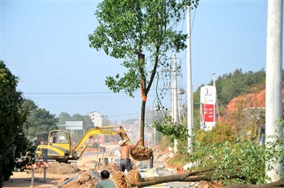 香城大道的施工建设现场如火如荼,工人正在对道路两边的人行道和绿化带紧张施工中。据悉,香城大道全长7.6公里,为双向四车道,全程从旗鼓大道沿线咸通高速横路至横沟三岔路口。预计在9月底,香城大道将以“山水田园型”绿色景观通道竣工通车。