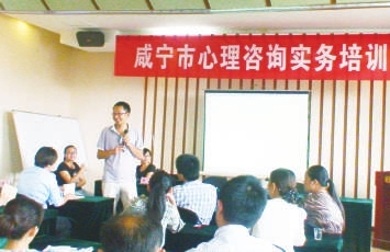 前日,全市首届社区矫正心理咨询实务培训班开班。湖北科技学院心理系老师、国家二级心理咨询师魏昶,为学员讲授了心理咨询原则和技巧,提高了社区矫正工作人员开展心理咨询工作的能力。(原子王贞元摄)