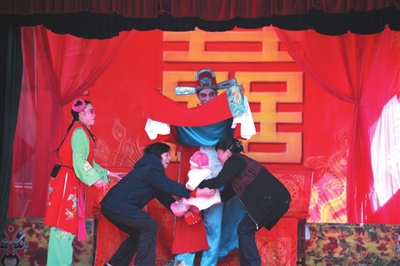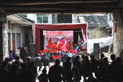 舞台上的戏班,唱的就是有百余年历史的提琴戏。这个土戏班叫崇阳县白霓镇湾头戏剧团,是一个家族戏班,已传承几代人。目前,剧团一共12人,年均演出200多场。