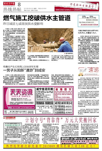 燃气施工挖破供水主管道