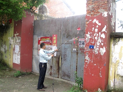 9月26日,赤壁市中伙铺镇组织城管用专业冲洗机对街道边的路灯杆、公交站台,灯箱标牌上“牛皮癣”进行清洗。自该市将中伙铺镇纳入城区建设以来,该镇加强了强城市管理力度,并发动居民共同治理“城市牛皮癣”。艾菊桂王小军/摄