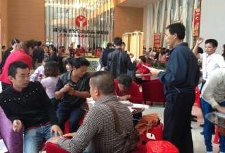 虽说“一场秋雨一场凉”,可骤降的气温却并未降低市民们的认筹热情。上午八点半,距入场还有半个小时,市民朋友已在寒风细雨中排起了长龙。9点整,前十位市民成为首批认筹客户。在长长的“基金缴纳”队伍末尾,记者发现几位大哥、大姐聊得热火朝天,上前一问才知道他们就住在咸宁义乌附近,在看好这次项目的同时也希望自家周边能发展好,所有相邀一起过来认筹。开广告公司的刘老板信心十足地对记者说:“咸宁义乌的广告就是我做的,我绝对看好这个项目。我先认个筹拿到号,等开盘以后可以多拿几间铺面,到时候转手一部分,自己留两间收租或者开店。”除了咸宁本地的市民朋友,记者还看到很多广东、浙江、武汉等地的朋友。
