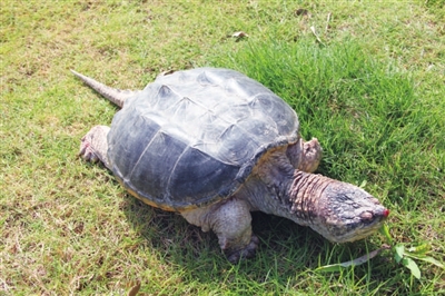 “这是一只鳄鱼龟,原产于美洲。”市水产局一伍姓专家一眼就认出来了。伍专家介绍说,鳄鱼龟,属于外来生物。这种鳄鱼龟非常适应我国内地的环境,长势很快,已经对本地生物造成隐患。