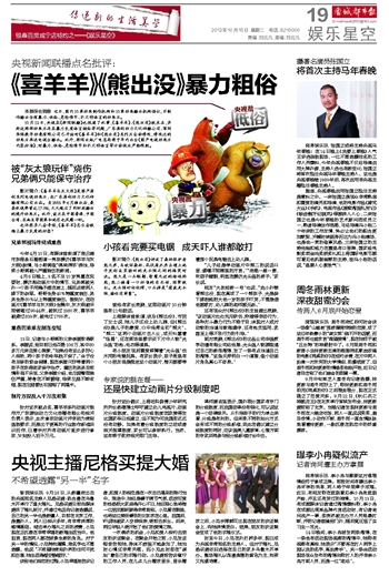 10月12日,央视在《新闻联播》也报道了此事,《喜羊羊》、《熊出没》被点名,并称这两部动画片存在暴力失度语言粗俗等问题,广东原创动力文化传播公司、深圳华强数字动漫有限公司已开始对《喜羊羊》和《熊出没》系列片全面修改,修改过的动画片再送电视台播出。此外,新闻出版广电总局将于年内出台《国产电视动画片内容标准》,对暴力、低俗、危险情节和不文明语言等方面做出严格限制。