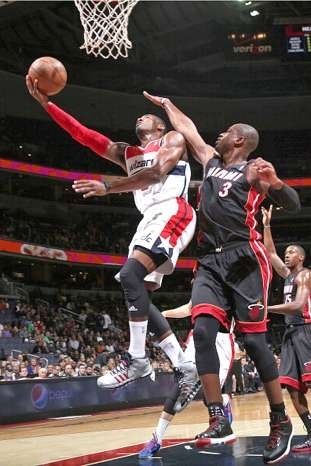 有比尔存在,沃尔就不需要在得分方面投入过多,他只需要安心送出自己的传球就行。不过与8次助攻相比,沃尔此役最惊艳的地方是5次抢断,以及在快攻中的犀利突破。比如说在比赛第三节还有9分09秒的时候,阿里扎抢下篮板球后发现沃尔已经前插至中线附近,随后阿里扎将球送出,沃尔一路突破,在刚进入禁区的时候就高高跃起,单手使出一招举火烧天,将球扣入到篮筐中。