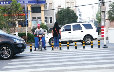 为了规范交通秩序,防止行人乱穿马路、车辆随意压黄线超车、掉头而引发交通事故,9月份,我市交警部门在市区长安大道新安装了一段护栏。近日记者发现,多处防护栏遭破坏,埋下了安全隐患。方达星/摄
