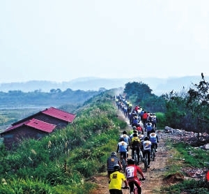10月19日,2013赤壁热线首届环东港湖山地自行车挑战赛圆满结束,全市近百名选手经过激烈比拼,最后,来自咸宁市直的谭典和通城县的戴丽霞分别获得男子组和女子组第一名。 艾菊桂李传丽/摄