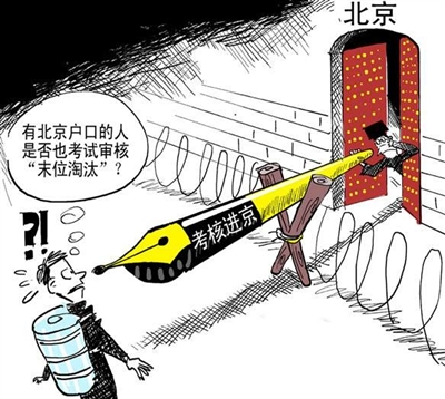 所谓的“通过考试取得北京户口”,其实就是通过学历、稳定的工作等外在条件,将人分为三六九等,这和前几年某官员所说的“将低素质人员赶出北京”的论调几乎如出一辙。北京不只是北京人的北京,而是所有中国人的北京,如果必须通过考试才能取得北京户口,那么最公平的做法就是,包括北京居民在内的所有人都参加考试,这显然很荒唐。