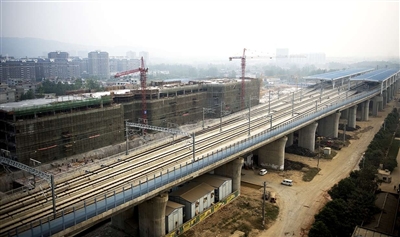 昨日,记者在城区武咸城际铁路咸宁南站看到,施工人员正在加紧施工,整个南站已具雏形。赵骥/摄