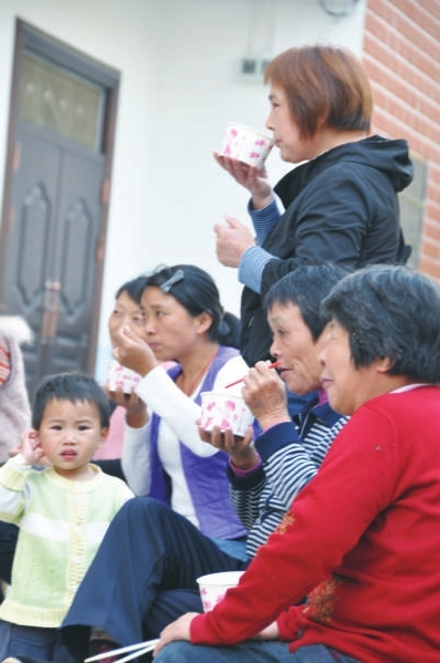 “有喜事就要一起分享。不仅娶媳妇,嫁女儿的前一天,生孙子的时候,主人家都会烧茶请大家,让大家聚在一起热热闹闹庆祝一下。”邻居李连英说,主家也不仅仅请来放鞭炮的人喝茶,路过的人都可以来讨碗茶吃,主家不仅毫不吝啬,而且非常高兴有更多的人一起“沾沾喜气”。