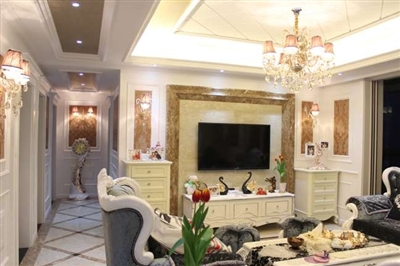 吊顶、电视背景墙、房门……处处都充满了精致的线条。用竖直线条组成的长方形简欧式吊顶,不繁不简,配上华丽的水晶灯刚刚好,不抢风头,也不失风采。电视背景墙用两种颜色的大理石,拼接出了富有层次感的线条,既生动又有质感,很好的凸显出了房屋主人的品位。卧室、餐厅、卫生间的门,无一例外的都采用了包边设计,立体感的门边线条,不仅显得精致、有设计感,还让人赏心悦目。墙壁也是充满了线条感,一般人的家中都是采用墙漆、墙纸整面的铺贴,而王先生的家,在客厅、走道的墙壁上都运用了方形、长方形线条加以设计,让家中的每一处都充满精致的线条感。