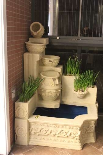 我从王先生家中的装修就感受到了王先生一定是一个注重生活品质,有品味的人。连接客厅的阳台是王先生家的生活阳台,主要用作晾晒衣物。但是在这一阳台的角落处,却设置了一个精美的欧式水池,在上面种上了水仙花,为生活阳台这一角落添色不少。