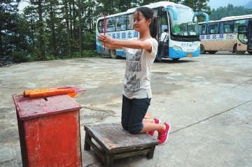 在“大雄宝殿”前,我拾阶而坐,放眼望去是一片云海,若影若现的山峦,凝听着殿堂里传来的佛音和木鱼声,我的心渐渐的沉静下来,没有了以往的浮躁。正如佛说:人生如处荆棘丛中,心不动,则身不动,不动则不伤;如心动,则人妄动,则伤其身痛其骨,于是品尝到世间诸般痛苦。唯有宁静,可以让心灵沉净,让生命坦然,让人生多一分高贵,多一分自在,多一分飘逸,多一分雅致,多一分庄严和善良。真有一种淡泊以明志,宁静以致远的感觉。