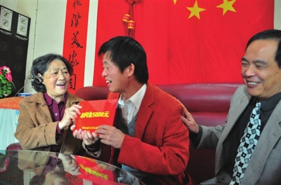 孔林松激动地说:“非常感谢政府和社会长期以来对我的关心,两年多时间还一直惦记着我,心里倍感温暖,谢谢你们啊!”