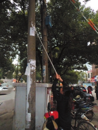 近日,为了维护好市容环境卫生,解决在清除违法小广告工作中的实际困难,市城管执法局城管一大队专门设计制作了一种伸缩铁铲,专门对付高处和粘性强的广告。