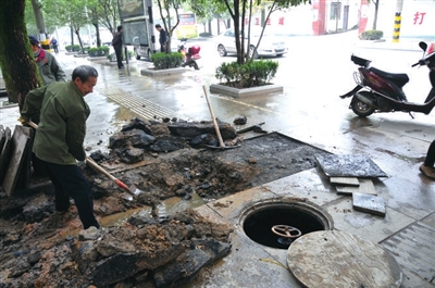 连续两天,市区温泉路与政通东街交汇处附近的人行道上不断有污水溢出,污水顺着地势一路漫延,散发出刺鼻气味,行人只能捂鼻而行。14日,来自市政部门的工人挖开路面检查后,发现是下水道堵塞所致。当天下午近4时许,经过抢修,管道疏通完毕。