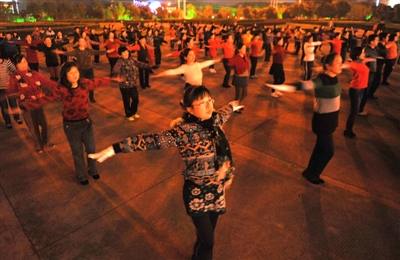 这几天,记者在市区转了转,在人民广场、老二桥边、一号桥边、市电信大楼门口……市民们成群结队,踩着整齐的步伐,弯腰、转身、抬腿,正悠然地跳着广场舞。