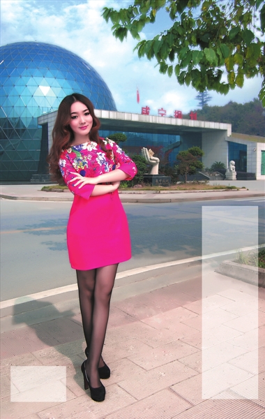 和煦的阳光下,李盼一袭玫红团花短裙,眼眸带笑,唇角含情,倒像是画中走出的人物。她身后的规划展览馆就是她规划青春的圣地。