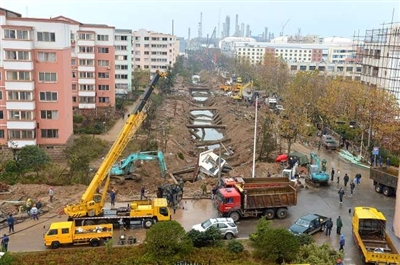 新华网消息 22日凌晨2时40分,中石化青岛开发区黄潍输油管线破裂造成原油泄漏,流经约2公里的地下雨水涵道后入海。22日10时30分左右,雨水涵道和输油管线抢修作业现场相继发生爆燃(两处爆燃点间距约700米),沿线道路路面严重受损,并引起流入海湾原油燃烧。