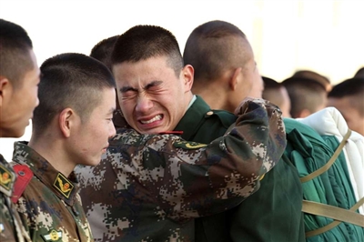 铁打的营盘流水的兵,又到一年道别时。昨日,武警咸宁市支队欢送退伍老兵离队返乡,百余名退伍老兵摘下肩章、帽徽,与战友依依惜别,告别警营,踏上返乡列车。 程昌宗 李盘根/摄