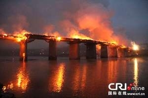 新华网消息28日凌晨4时许,有“亚洲第一廊桥”美誉的黔江濯水古镇风雨廊桥发生火灾,桥面上的木质建筑被烧毁。目前大火已被扑灭,火灾未造成人员伤亡。火灾发生后,中共黔江区委、区政府领导和有关部门人员迅速赶往现场开展相关工作。据初步判断,桥面上的木质建筑被烧毁,已无法修复,桥墩、桥面钢筋混凝土建筑未毁。目前,火灾具体原因正在进一步调查中。