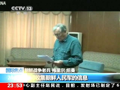 朝鲜中央通讯社于11月30日播放一段梅里尔·纽曼“认罪”的视频。朝中社表示,纽曼在朝鲜战争期间犯下的罪恶“罄竹难书”,他不仅在朝鲜期间负责策划各种针对朝鲜和军方的隐秘任务,包括破坏通讯和交通线、秘密培训游击队员,还涉嫌处死朝鲜士兵、杀害无辜民众。在这段被认为“剪辑痕迹明显”的视频中,纽曼大声朗读一份手写的“认罪声明”,表示自己“罪无可恕”,并“下跪请求获得朝鲜政府和人民的原谅”,同时还表示“不希望受到惩罚”。视频最后,纽曼鞠躬致歉,并在“认罪声明”最后按上手印。这份文字材料显示的日期是2013年11月9日。