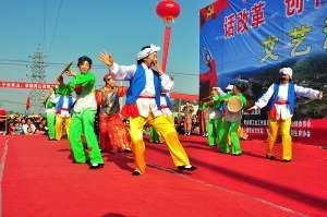 11月30日,寒霜露白,初冬的冷风吹得人直抖。一大早,从四庄八村赶来的千余村民,早早就守候在青山镇新建成的文化广场上,夹道欢迎来自18个村及青山社区的代表队入场,只见队员们身着各种各色的表演服装,举着村名牌,舞着红绿旗帜,个个精神抖擞,打着腰鼓,跳着欢快的舞步进场。