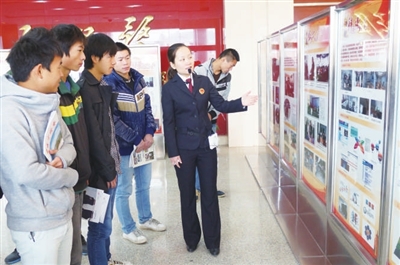 此次活动以“联系群众,服务群众,自觉接受群众监督”为主题,通过活动进一步密切我市检察机关同人民群众的联系,增强检查工作透明度。图为女检察官通过展览图片向代表们介绍近年来我市反腐倡廉所取得的成绩。 (原子董慧艳郑继伟摄)