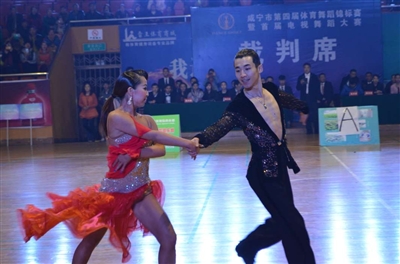 比赛旨在推动我市体育舞蹈事业的发展,同时为2014年省运会选拔参赛选手。 (周阳张浩)