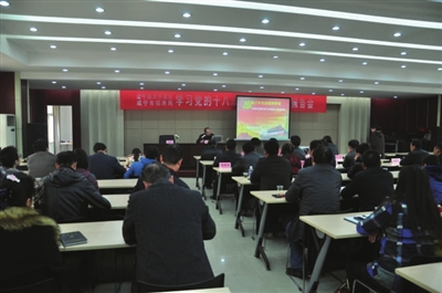 近日,咸宁市经济开发区和咸宁市招商局举行报告会,邀请市委宣讲团专家,为党员干部宣讲十八届三中全会精神。 (袁昊罗峰/摄)