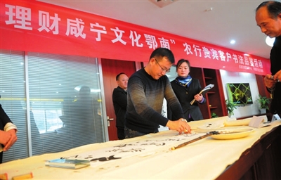 本报讯(记者方达星徐浪)“以书法汇聚人心,用理财凝聚魅力”。昨日,为弘扬中国书法文化,提升贵宾客户理财能力,咸宁市农行财富管理中心与市书法家协会联合举办“理财咸宁文化鄂南”贵宾客户书法品鉴活动。