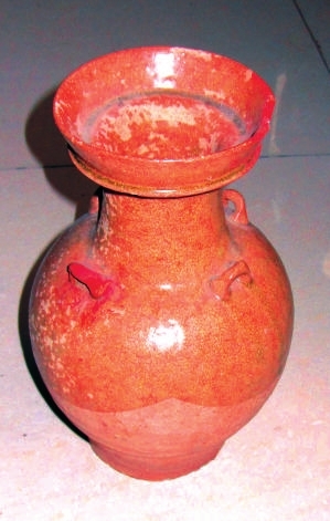 据咸宁文鼎古玩城收藏家刘礼仁介绍,三国两晋南北朝时期的青瓷盘口壶,其器形的变化总趋势是:早期器形矮胖端庄,盘口和底部较小,上腹特大,倾倒食物相当费力,且给人以不稳重之感。东晋时盘口加大,颈渐高,腹椭圆,式样秀气优美。南朝时口更大,颈加长,腹更深,底放大,给人以瘦长的感觉,不如东晋产品美观实用。“该藏品大盘口,长束颈,溜肩筑四个桥形系,鼓腹下敛,整体施青釉不及底。从造型及釉质特点来看,此四系盘口壶应为东晋江西丰城窑烧制的民间盛物器皿。”刘礼仁如是介绍。