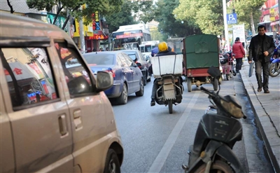 近日,记者从咸安南山白马市场沿线走到市第一人民医院门口,一路上,车辆走走停停,原本不宽敞的马路两边还乱停乱放着摩托车、麻木车等,同时,许多不按交通规则行驶的电瓶车在路上乱蹿乱跑,以及占道摆摊的商贩,使得马路变得更窄更堵。