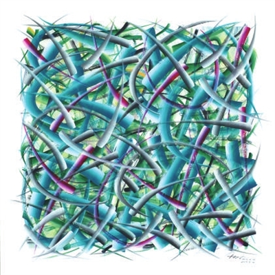 宋诗人张先词云:“天不老,情难绝。心似双丝网,中有千千结”。我们相信这一情感词句,可以作为我们欣赏汪京元抽象画面的辅线。