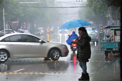 昨日,持续多日的暖阳躲到乌云背后,突然而至的阴雨天气,让气温骤然下降,不少市民穿起了厚厚的外套抵御寒冷。 毛亚轩/摄