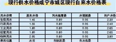 注:根据《咸宁市物价局关于调整咸宁地区自来水价格的批复》咸价管【2009】106号文、《市物价局关于调整咸宁地区污水处理费标准的批复》咸价管【2007】143号文件规定,从2009年11月起执行。