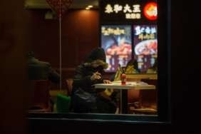 2014年1月7日,北京,大学考试周期间,对外经贸大学的一些同学为准备期末考试,选择在周边的快餐店复习。 (人民网)