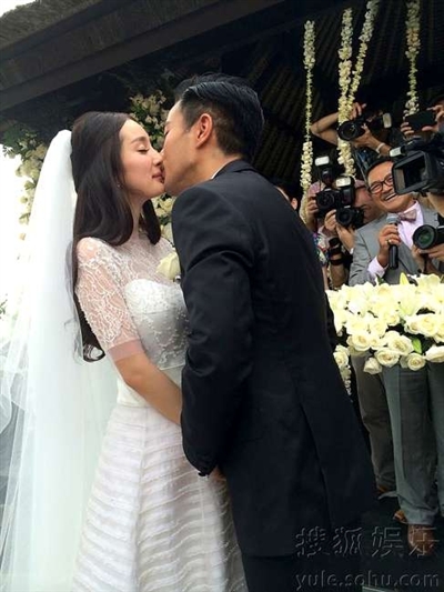 在宣读誓词的环节中,杨幂激动得泪流满面,颤声宣誓:“我将毫无保留的爱你。”刘恺威则甜蜜的掀开杨幂的头纱亲吻新娘。在交换戒指后,杨幂将手中的捧花递给唐嫣时再次落泪。