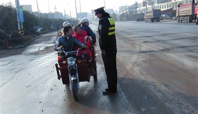 本报讯(记者方达星通讯员徐琪)18日,一辆电动三轮车载着4名大人和2名小孩,不顾危险穿行在咸安横沟桥镇107国道路上,所幸及时被在路上执勤的民警拦下,未发生严重后果。