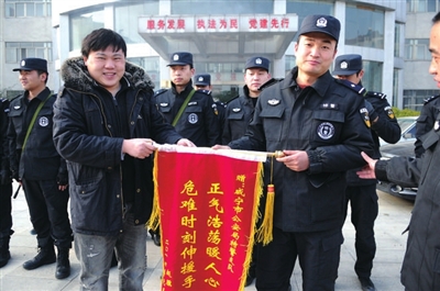 本报讯(特约记者丁泳涛通讯员张恒)昨日,市民赵先生带着精心制作的锦旗,专程来到市公安局特警支队,感谢民警李晓洪在危难时刻伸援手,挽救了他的生命。