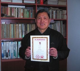 本报讯 (记者 艾菊桂)1月22日, 赤壁市竹笔书法家覃绍志收到了北京人民画院寄来的“国家一级书法大师”入网认定证书,近50年的不懈追求终于得到肯定。