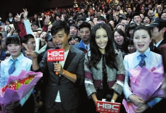 本报讯(记者毛亚轩)13日晚9时许,电影《北京爱情故事》明星映后见面会在华谊兄弟武汉光谷影院举行。该片导演陈思诚、主演佟丽娅现身影院,与影迷粉丝亲密接触。当日下午4时许,我市34名幸福影迷奔赴江城,在观影后与明星共谈“爱情”话题。