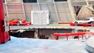 12日,美国肯塔基州克尔维特国家博物馆(NationalCorvetteMuseum)内突然出现一个大坑,吞没正在展览的8辆顶级跑车。 (中新网)