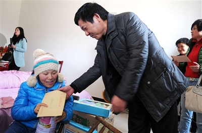 下午2点30分,离开张家前,阳新县残联副理事长王坚递给张承本400元钱,并对他说,有咸宁和黄石两地媒体和残联的关心和帮助,有这么多爱心企业的资助,你们一定要好好珍惜,抚养好孩子,善待妻子,等孩子长大后记得感恩并回报社会。