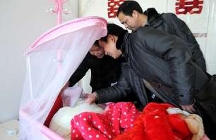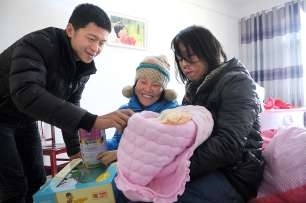 “孩子很乖,从不哭闹。”张细兰看着宝宝对众人说,自己害怕把宝宝摔了,所以不敢抱,只是逗弄一下。说完,张细兰用手轻轻地摸了一下宝宝的脸,笑着对张承本说:“他睡得好香啊!”一家人和谐幸福的场景令在场的人心里都感觉暖暖的。