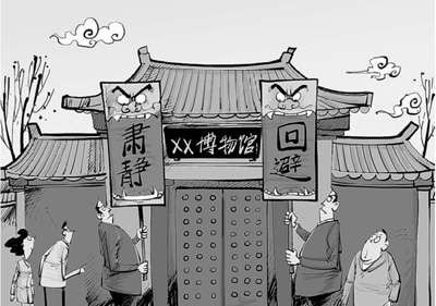 有关方面让群众下午3点再来,群众有意见,一是还得等好几个小时,二是担心到时领导走了,馆内现场表演的艺人怕也“消失”了。