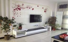 在软装搭配上,杨女士则是大胆用色,但是鲜明色彩的物品都是局部点缀。例如,米色条纹沙发搭配果绿和彩色抱枕、白色电视背景墙贴上红色花纹强帖等。